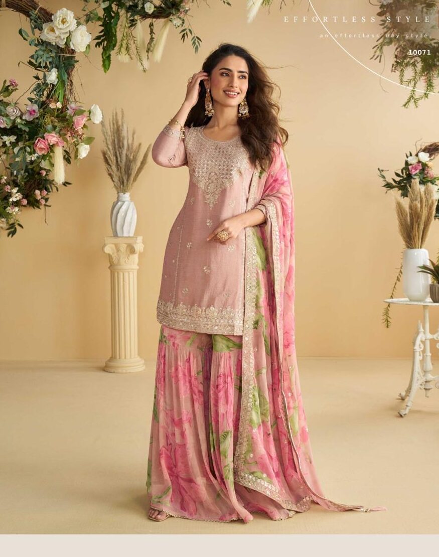 A curated trio of premium silk ensembles, blending festive elegance with designer flair. Each look features rich textures, vibrant palettes, and exclusive detailing—perfect for celebrations and standout moments.
