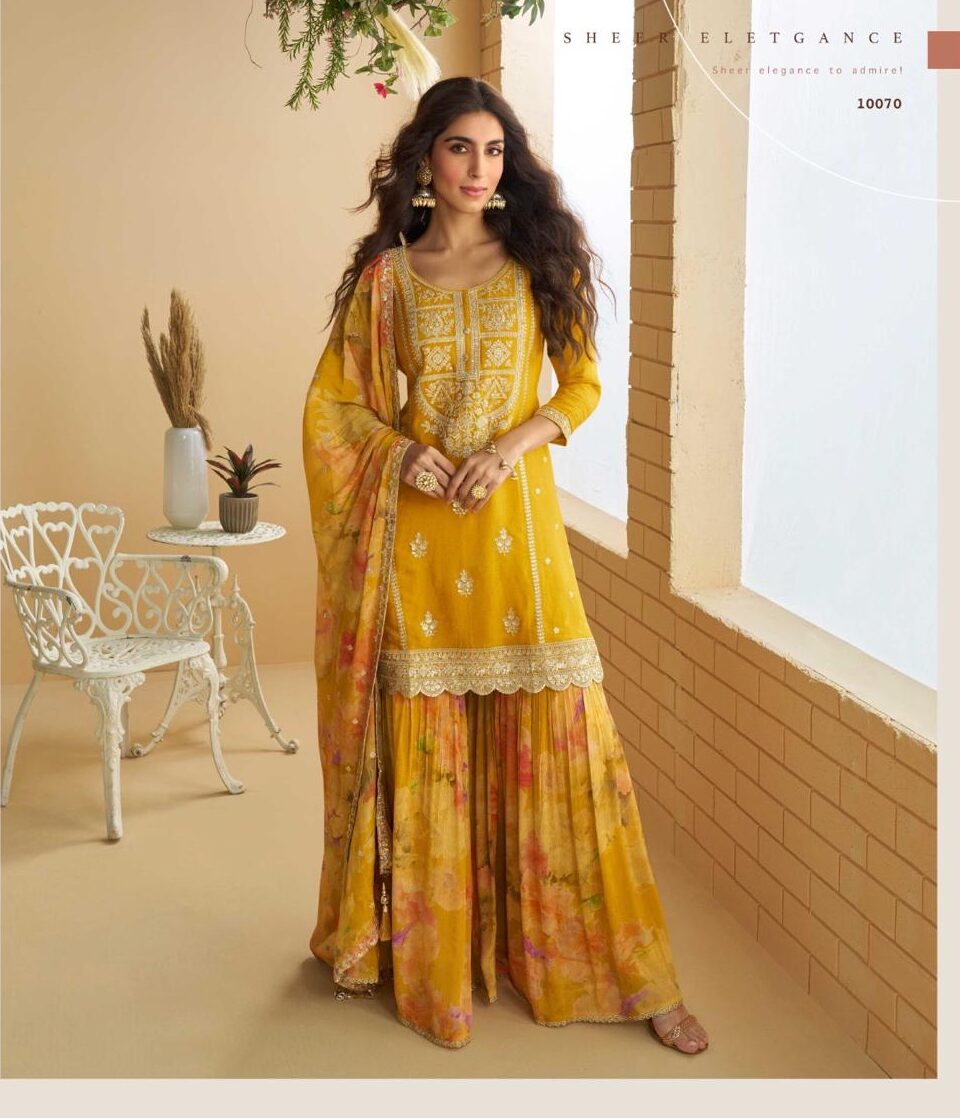 A curated trio of premium silk ensembles, blending festive elegance with designer flair. Each look features rich textures, vibrant palettes, and exclusive detailing—perfect for celebrations and standout moments.