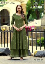 Celebrate the season in style with this pastel rayon co-ord set, featuring elegant embroidery and a graceful divided skirt-style bottom for added flair and comfort. Crafted for pujas, gifting, and intimate gatherings, it blends tradition with a modern silhouette.