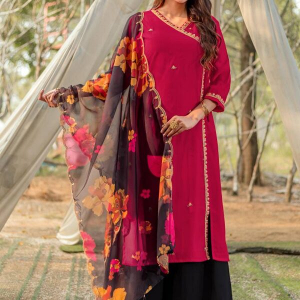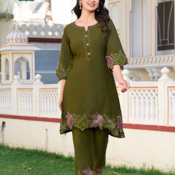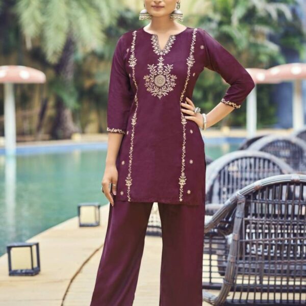 Step into the festive season with grace and charm in our exclusive silk co-ord sets. Each ensemble pairs a beautifully embroidered tunic with matching bottoms, designed to celebrate tradition with a modern twist.